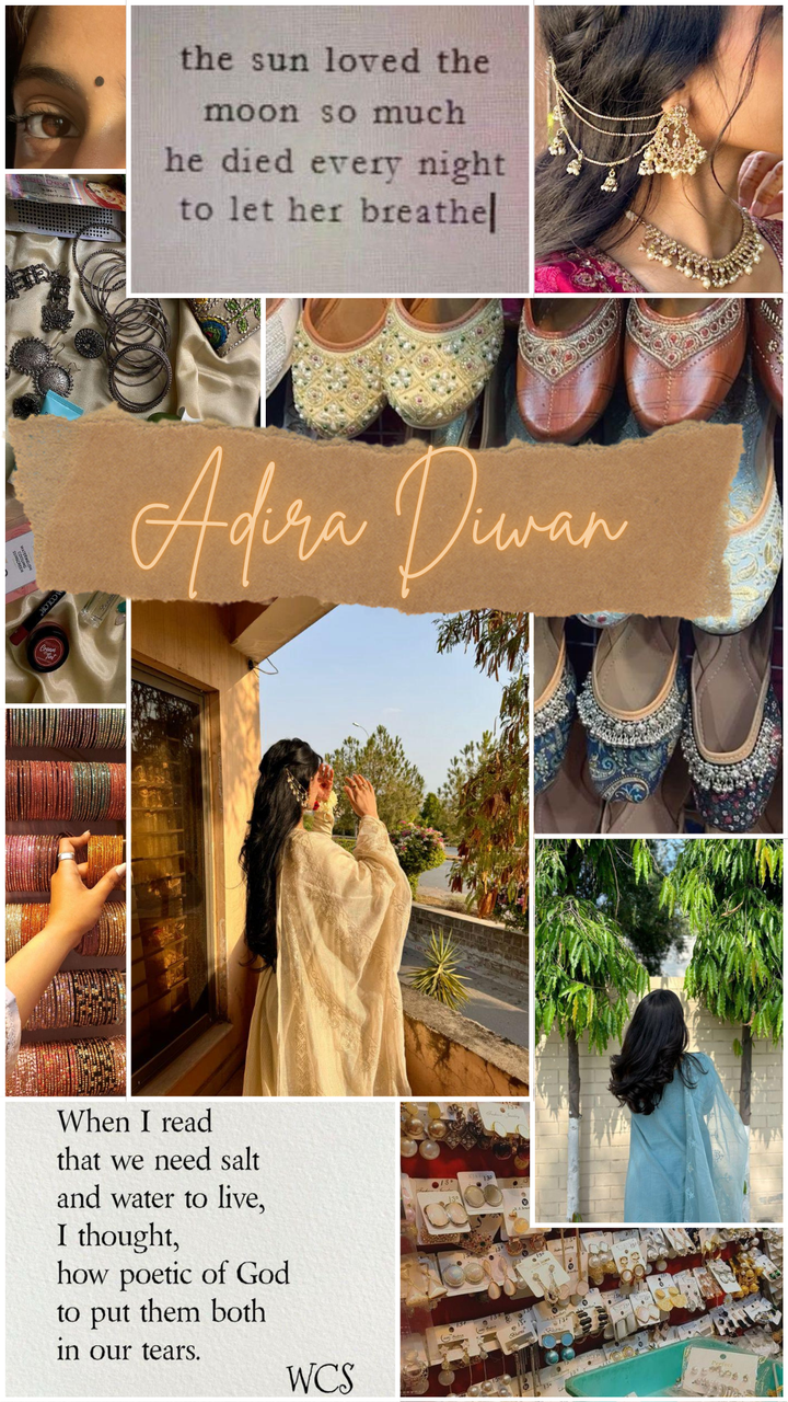 Adira is a sweet, kind, introverted and a sunshine girl who finds good in everybody. She lost her father when she was 2. She lives in Mumbai with her mother and is pursuing Fashion Designing 1st year in Mumbai and fully ready to grow further in her life. Her hobby is reading books (bet you know which one -ahm ahm).